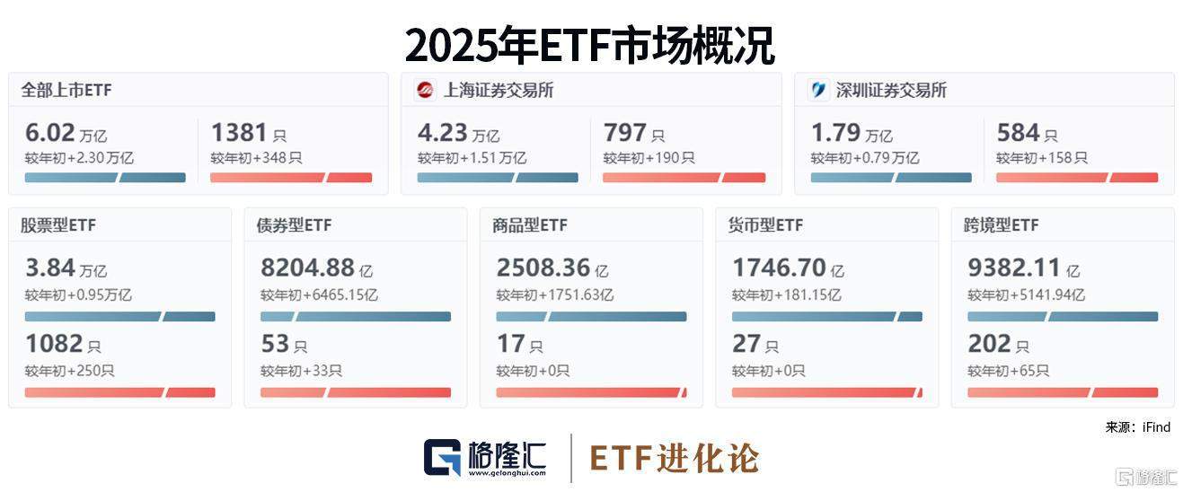 截至12月31日,全市场ETF规模达到6.02万亿元,较年初增加2.3万亿元,再度刷新历史纪录。其中,股票ETF规模达3.84万亿元。
