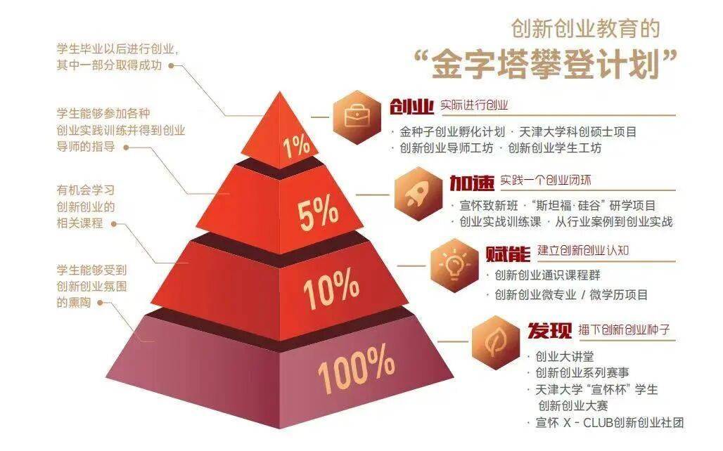 在此基础上,全力推动“九个一”创新创业生态体系建设,涵盖创投基金群、创业大讲堂、创新创业论坛、创新创业课程、创业大赛、创业加速营、创业家俱乐部、科技成果转化奖及天津大学科技园。