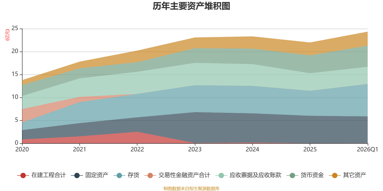 资产重大变化方面,截至2026年一季度末,公司存货较上年末增加29.69%,占公司总资产比重上升4.23个百分点;固定资产较上年末减少2.32%,占公司总资产比重下降3.22个百分点;应收款项融资较上年末减少84.2%,占公司总资产比重下降2.12个百分点;应收票据及应收账款较上年末减少2.47%,占公司总资产比重下降2.09个百分点。