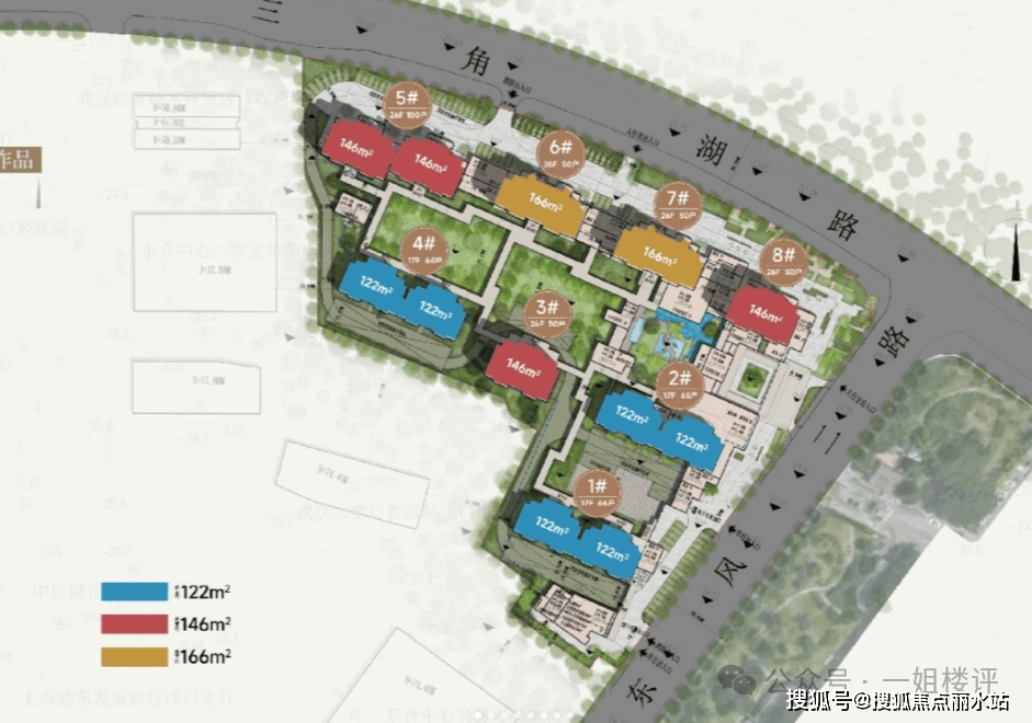 可以看到,该项目的大户型集中在北侧三角湖路沿线。那么这些大户型能不能看湖呢?