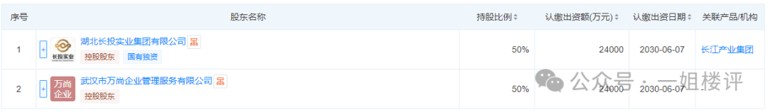 从武汉长万置业的股权占比来看,长投实业和万科各占股50%,其中长投实业隶属于长江产业投资集团,为湖北省国资。