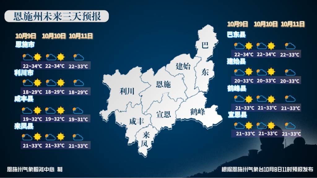 未来三天,受副高控制,州内以多云到晴天气为主,午间气温较高,局部有短时阵雨。