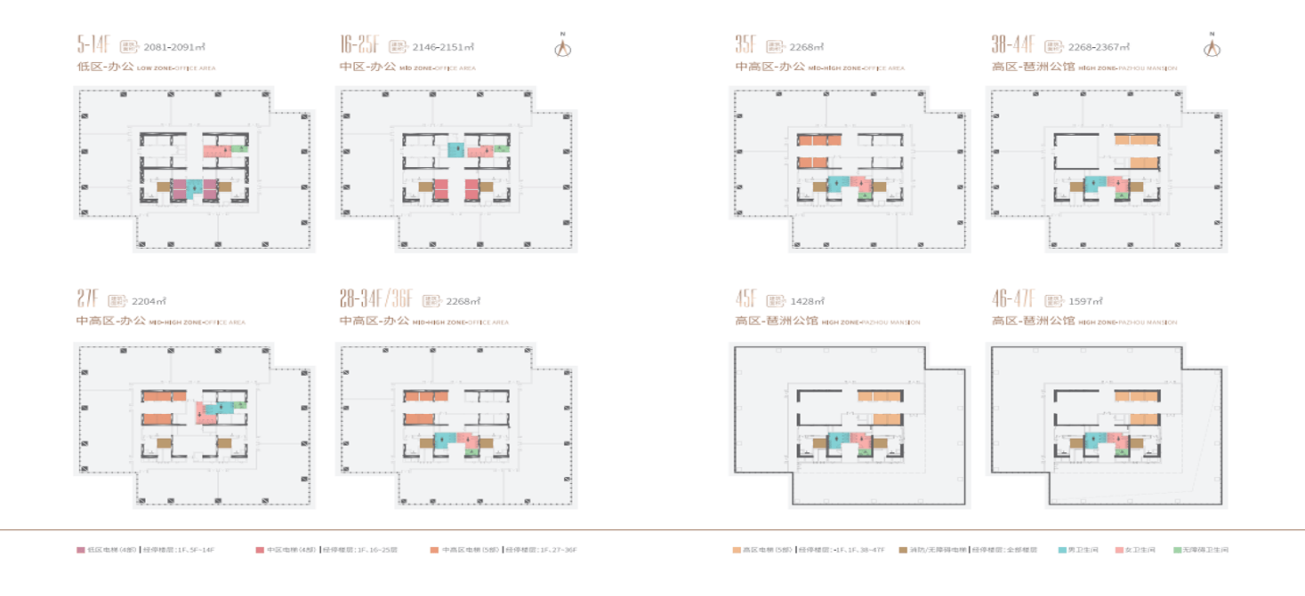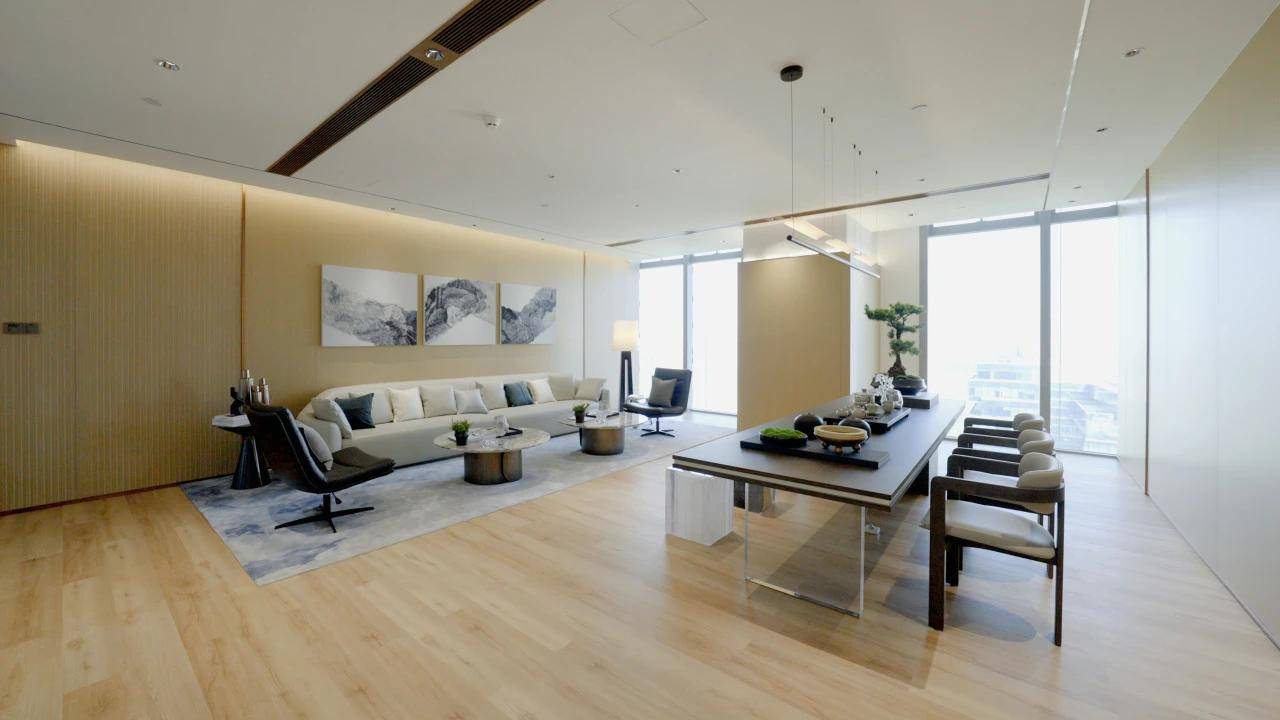 办公空间设计聚焦科技与灵活:标准层面积约 2000 平方米,层高 4.5 米,净高 3.2 米,采用无柱化布局,实用率高达 75%,可灵活分割为 150-2000 平方米的独立办公区。12 层以上为 “数字办公区”,配备智能会议系统(支持 8K 视频会议、AI 实时翻译)、物联网办公设备(可通过手机 APP 控制灯光、空调),部分高层单元可俯瞰珠江与琶洲会展全景。