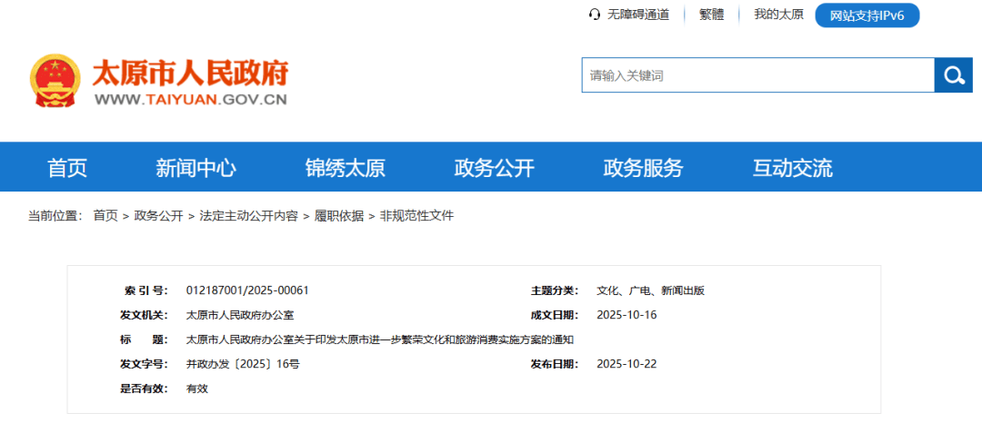 2025-10-24开云体育,开云体育官方网站,开云体育APP下载近日,太原市人民政府办公室印发《太原市进一步繁荣文化和旅游消费实施方案》(并政办发〔2025〕16号),紧扣“培育新增长点、满足民生需求、推动高质量发展”核心目标,从提升消费体验、丰富产品供给、打造消费场景、深化产业融合、优化消费环境五大维度推出20项具体举措,推动文旅产业向“支柱产业+民生产业+幸福产业”升级,为“锦绣太原城”文旅发展注入新动能。