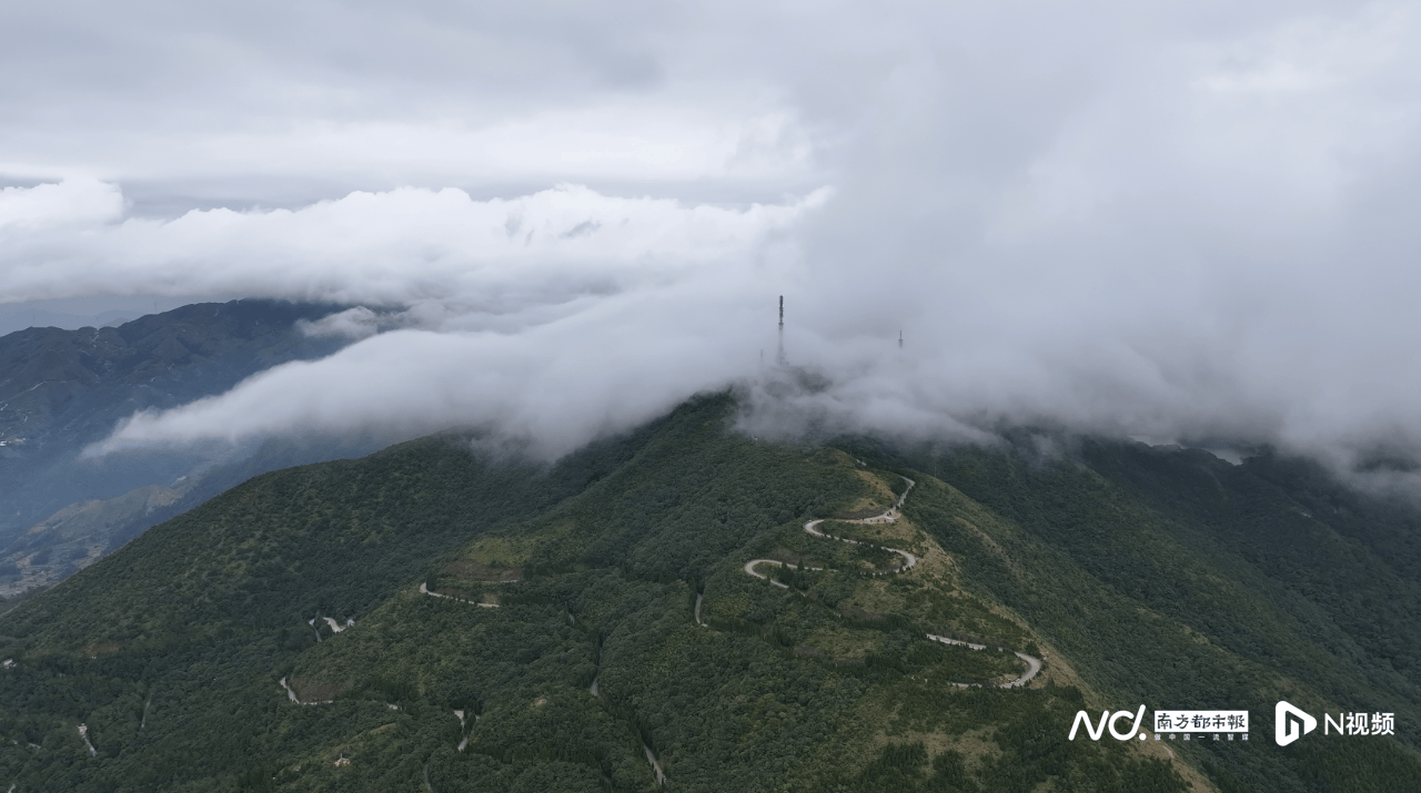 一路攀爬的艰辛与疲惫,在登临粤西第一高峰“大田顶”那一刻化为欣慰与欢呼。站在海拔1703.8米的粤西之巅,云海在脚下翻涌,山风呼啸而过,穿透云层的光芒照亮每一张坚毅的面庞。短暂休整后,挑战者们调整好呼吸,再次迈开脚步,继续前进。