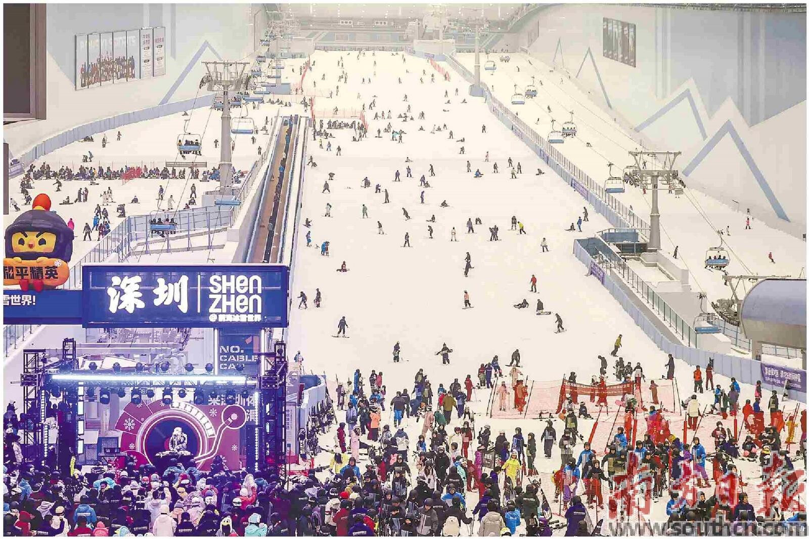 元旦假期,位于深圳的全球最大室内滑雪中心华发冰雪热雪奇迹人气旺盛。南方日报记者 朱洪波 通讯员 曾星元 摄