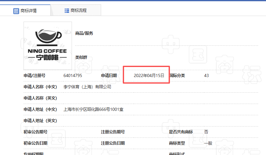 事实上,宁咖啡的跨界布局早有筹备。早在 2022 年 4 月 15 日,李宁体育 (上海) 有限公司便已申请注册 “宁咖啡 NING COFFEE” 商标,申请注册号为 64014795,国际分类涵盖 43 类餐饮住宿相关服务,为品牌跨界奠定了坚实的知识产权基础。商标注册完成后,宁咖啡率先在厦门、广东、北京等地的李宁门店内试点运营,初期推出经典宁美式、经典宁拿铁、生椰拿铁等多款饮品,采用到店消费免费畅享的模式,旨在通过优化服务细节,提升消费者购物过程中的舒适度与体验感。