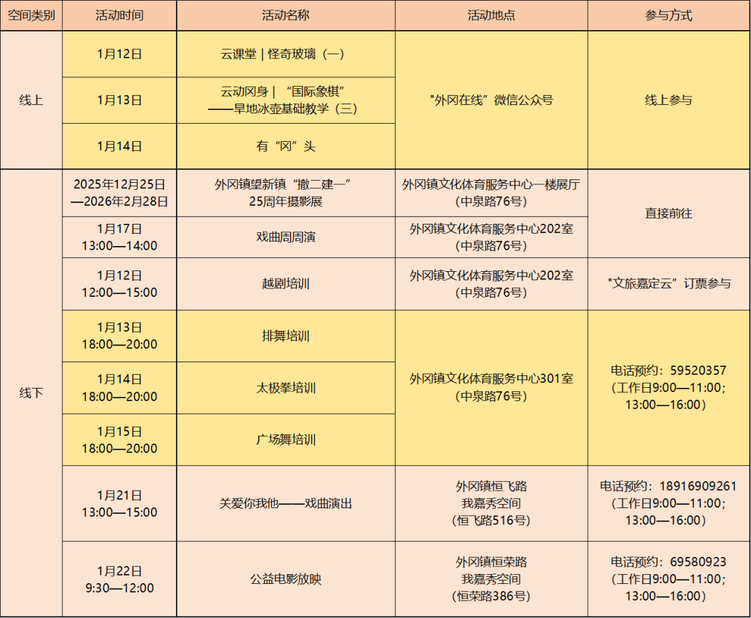 上述活动建议参与对象为6岁以上(未成年人需家长陪同),具体详情请以“文旅嘉定云”网站活动信息为准。