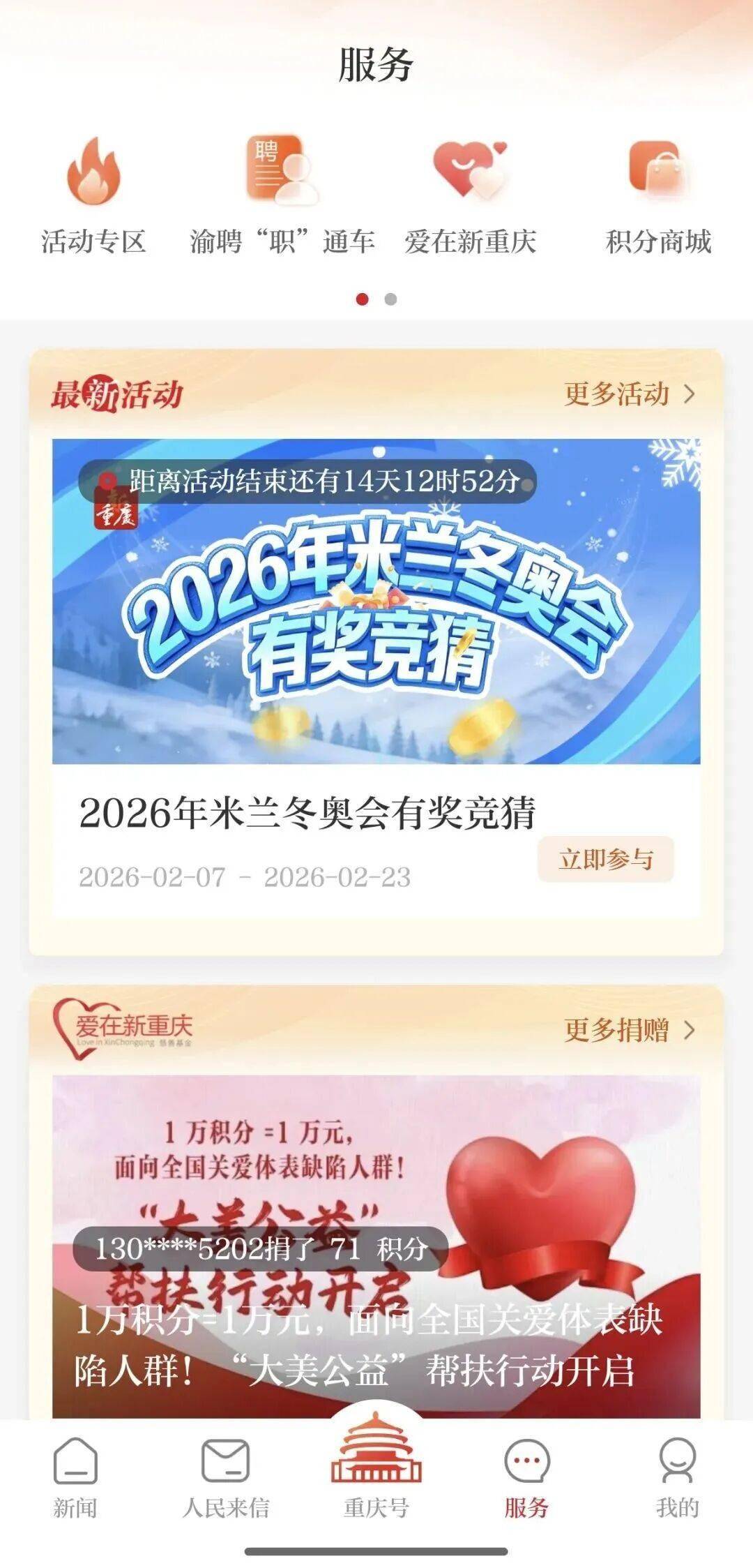 此外,“爱在新重庆”栏目关注体表缺陷人群,“渝聘‘职’通车”栏目聚合招聘信息,实现岗位直达,相关服务配套解读报道同步呈现,形成“服务+内容”的组合。