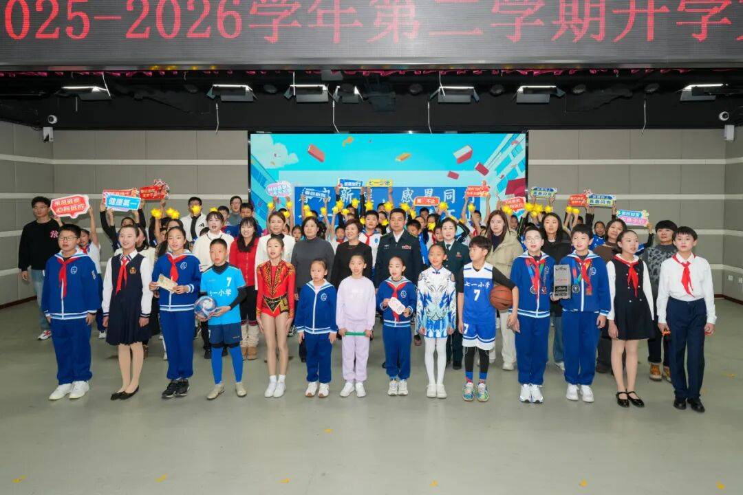 开学典礼上,短道速滑前世界冠军赵楠楠为学子们带来了开学第一课——做自己的冠军。她深情寄语同学们:“身心健康是最硬的底牌。只有身体棒、心态好,才能撑得起梦想。新学期,愿大家身心同健,在自己的赛道上滑出风采,做自己的冠军!”校长莫亚群围绕“健康第一,向光而行”主题,鼓励同学们要练出棒棒的身体,拥有阳光的心态,在运动中强健体魄,做眼里有光、行动有力、独一无二的闪光小马。