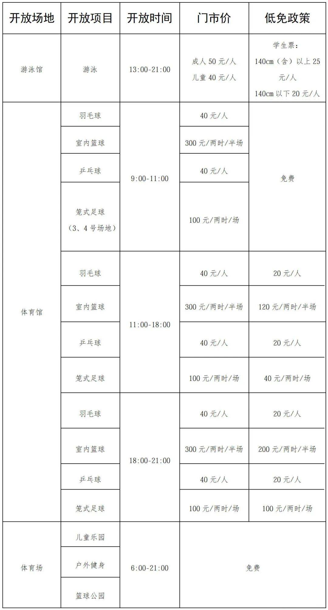 春假4月1日至4月3日期间,淮安市体育中心游泳馆、体育馆、体育场面向中小学生具体开放方案如下: